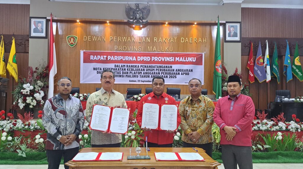 MBN.COMĀ – Paripurna DPRD Maluku kembali mencatat sejarah penting dalam perjalanan tata kelola keuangan daerah. Selasa malam (23/9/2025), Gubernur Hendrik Lewerissa bersama Ketua DPRD Benhur Watubun resmi menandatangani nota kesepakatan Kebijakan Umum Perubahan Anggaran (KUPA) dan Prioritas Platform Anggaran Perubahan (PPAP) APBD Provinsi Maluku Tahun Anggaran 2025. Penandatanganan ini disaksikan Wakil Ketua DPRD Fauzan Rahawarin, John […]
