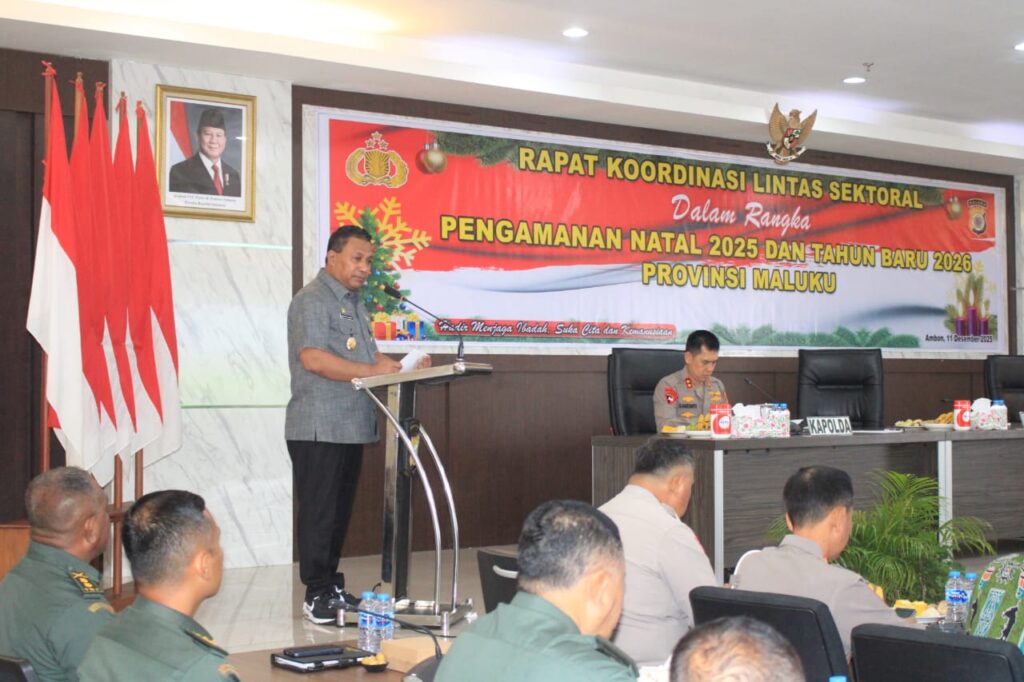 MBN.COM — Wakil Gubernur Maluku, H. Abdullah Vanath, menghadiri Rapat Koordinasi Lintas Sektoral dalam rangka Pengamanan Natal 2025 dan Tahun Baru 2026 tingkat Provinsi Maluku. Kegiatan tersebut berlangsung di Aula Lantai 5 Gedung A Polda Maluku pada Kamis (11/12). Rapat koordinasi ini turut dihadiri oleh Kapolda Maluku, Danrem 151/Binaya, para pimpinan OPD lingkup Pemerintah Provinsi […]