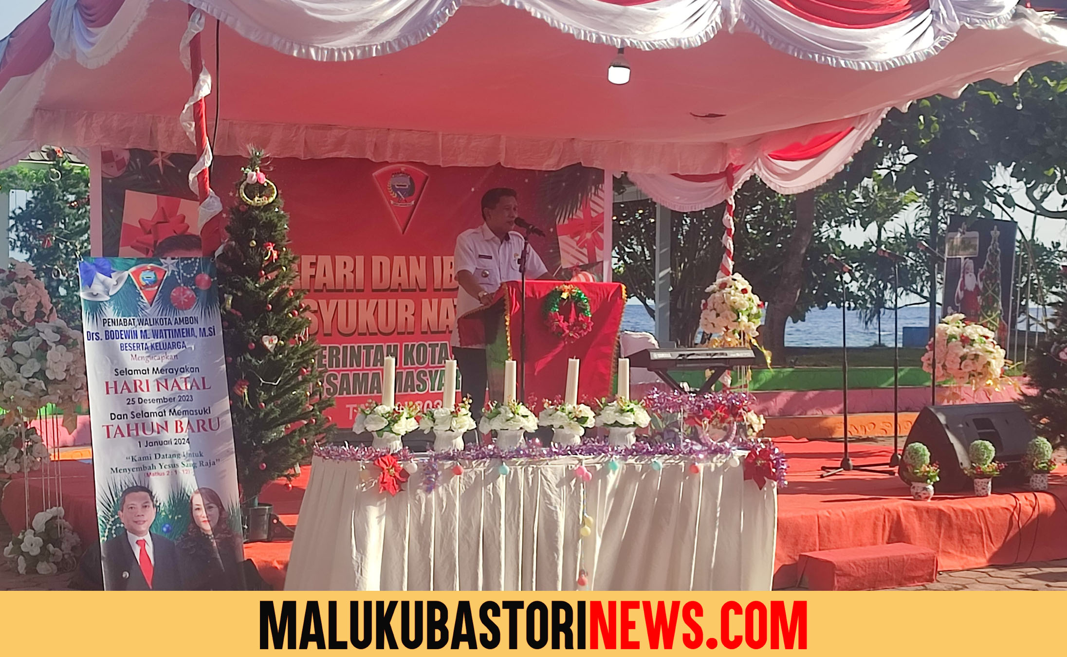 MBN.COM (PPID) – Pemerintah Kota (Pemkot) Ambon melaksanakan Safari Natal Tahun 2023 di Ronawiska Beach, Negeri Latuhalat, Kecamatan Nusaniwe, Rabu (27/12/23).